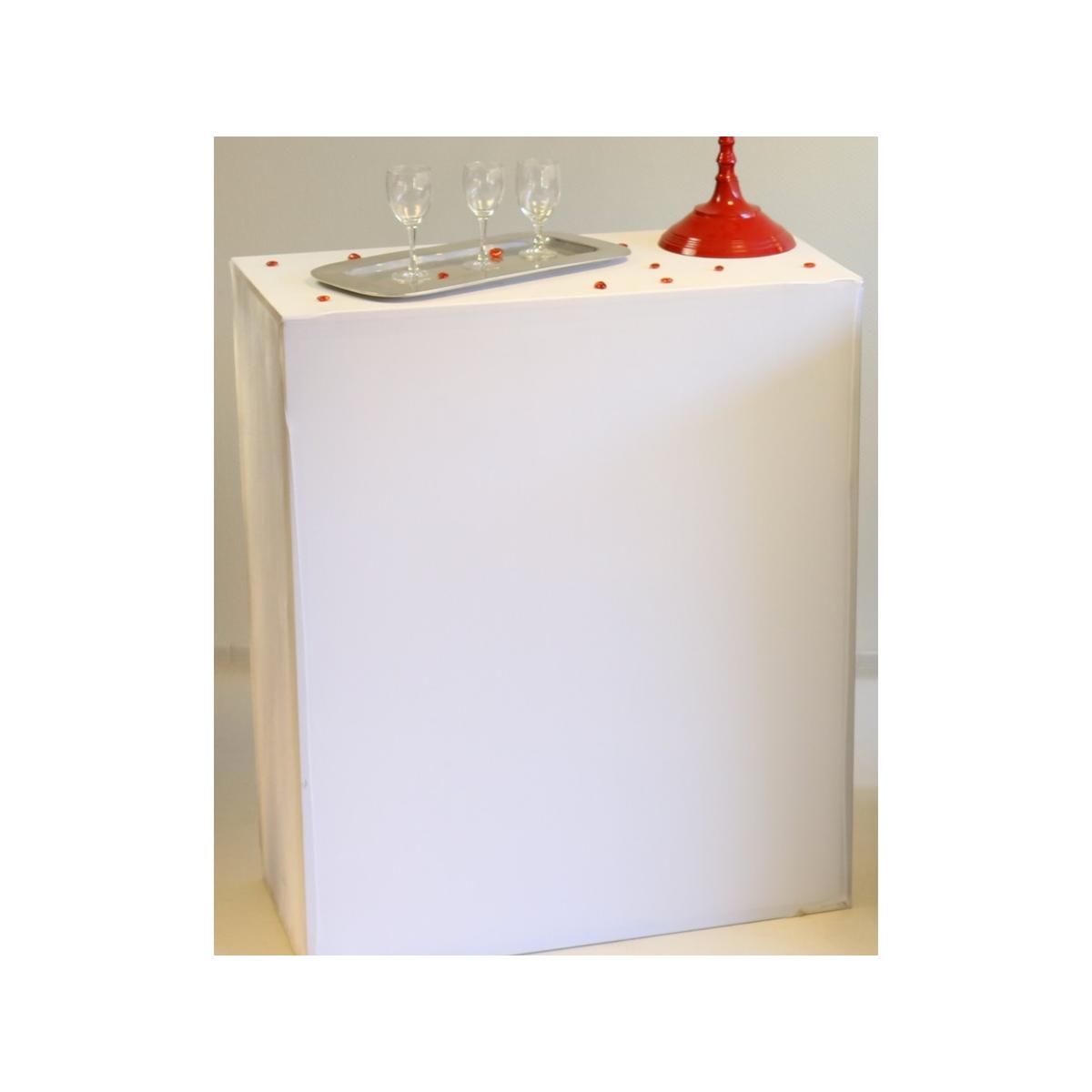 Desk pliant 5 faces à 90°. Une structure en aluminium et un plateau basculant en contreplaqué renforcé aux quatre coins par des équerres métalliques. Montants, aux quatre angles, garantissant un houssage parfait au tendu «square». Ce desk pliant s’installe, déployé et houssé, en moins de cinq minutes par une seule personne ! Tout en-un, il est très pratique. Il offre sous le desk houssé un volume de stockage discret et utile.