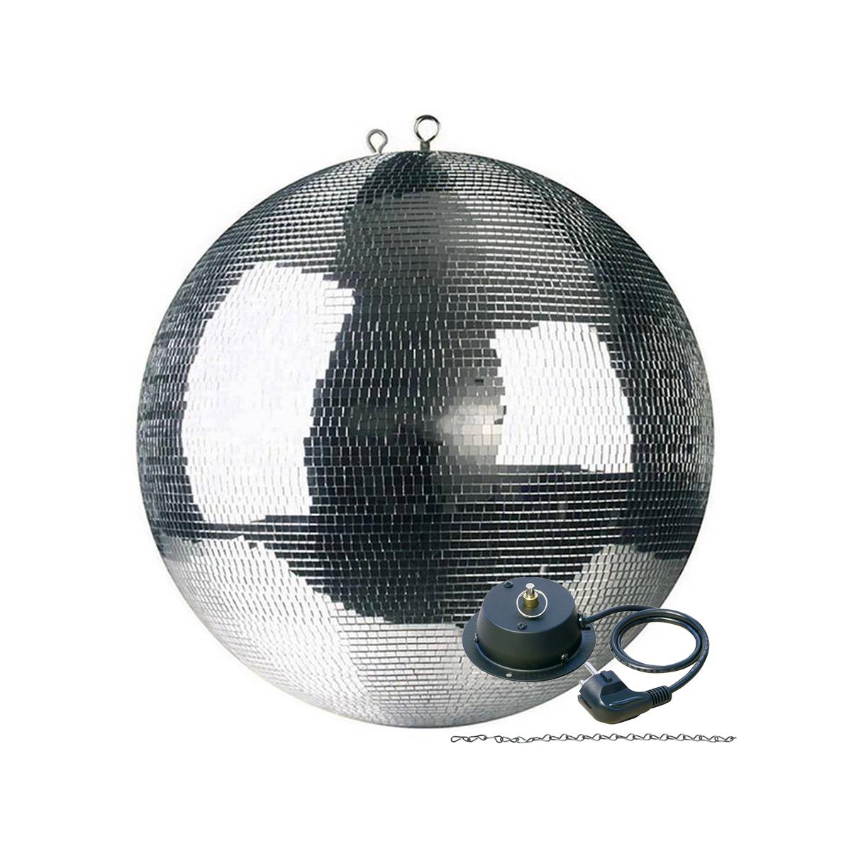Boule à facettes de 80 cm de diamètre avec un moteur pour assurer sa rotation.