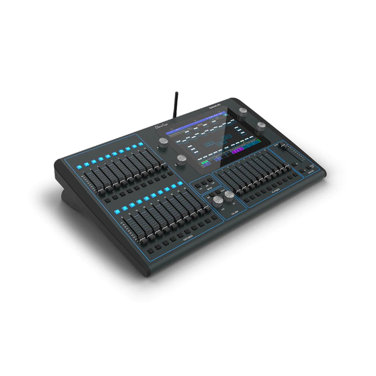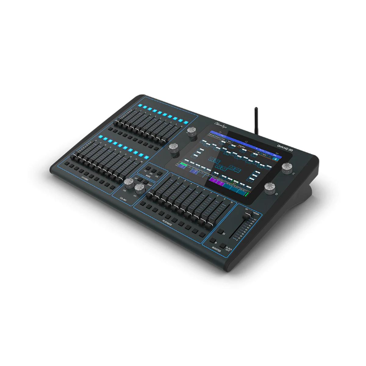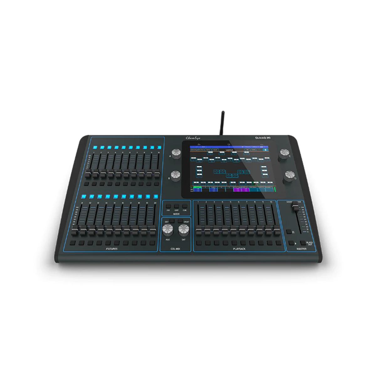 La QuickQ 20 fait partie de la gamme QuickQ de ChamSys, des consoles de contrôle d’éclairage conviviales et abordables. Elle dispose d’un grand écran tactile de 9,7 pouces utilisant une interface de type smartphone pour la configuration, la programmation et la lecture de votre spectacle.