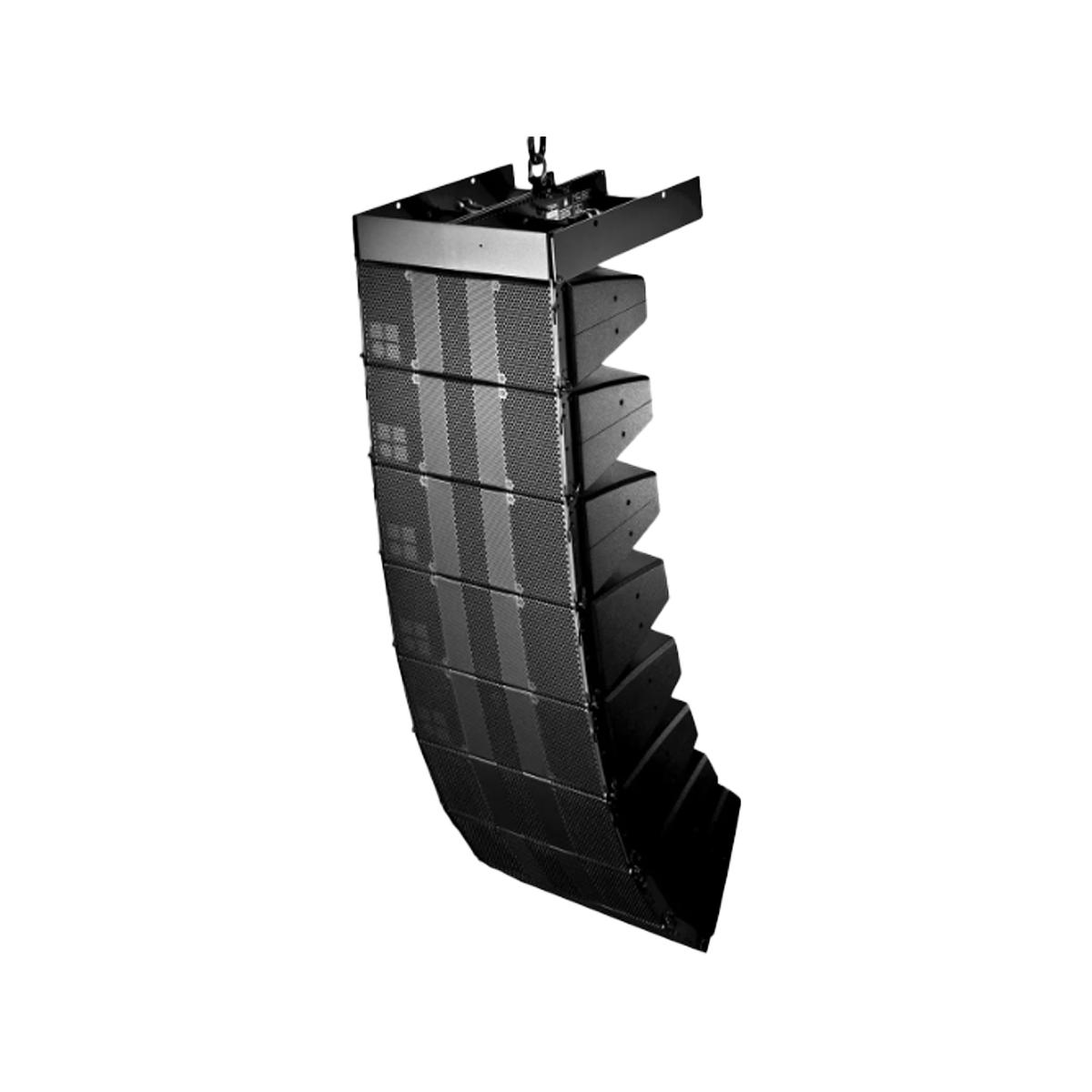 La T10 est une enceinte passive deux voies, intégrant deux haut-parleurs 16,5 cm suivant une disposition dipolaire, un haut-parleur 3,6 cm pour les fréquences aiguës et un filtre passif. Elle convient à des configurations en line array ou en point source à haute directivité. Le haut-parleur de graves, monté sur un pavillon à guide d’onde spécifique, produit une directivité verticale en ligne source tout en assurant une directivité horizontale de 90° jusqu’à 600 Hz environ. Une lentille acoustique placée devant le pavillon étend la directivité horizontale à 105° et la rotation du pavillon à 90° assure la précision de la directivité de la point source. Ainsi, une enceinte T10 orientée verticalement peut se transformer en une enceinte large bande autonome assurant une directivité horizontale/verticale de 90°x35°. La T10 est en mousse de polyuréthane durcie et recouverte d’une peinture de finition résistante aux chocs. Elle est équipée d’accessoires d’accrochage pour des assemblages en line array. La façade de l’enceinte est protégée par une grille métallique rigide doublée de mousse acoustiquement neutre. Enfin, deux connecteurs EP5 ou NL4, reliés en parallèle, figurent sur la face arrière.