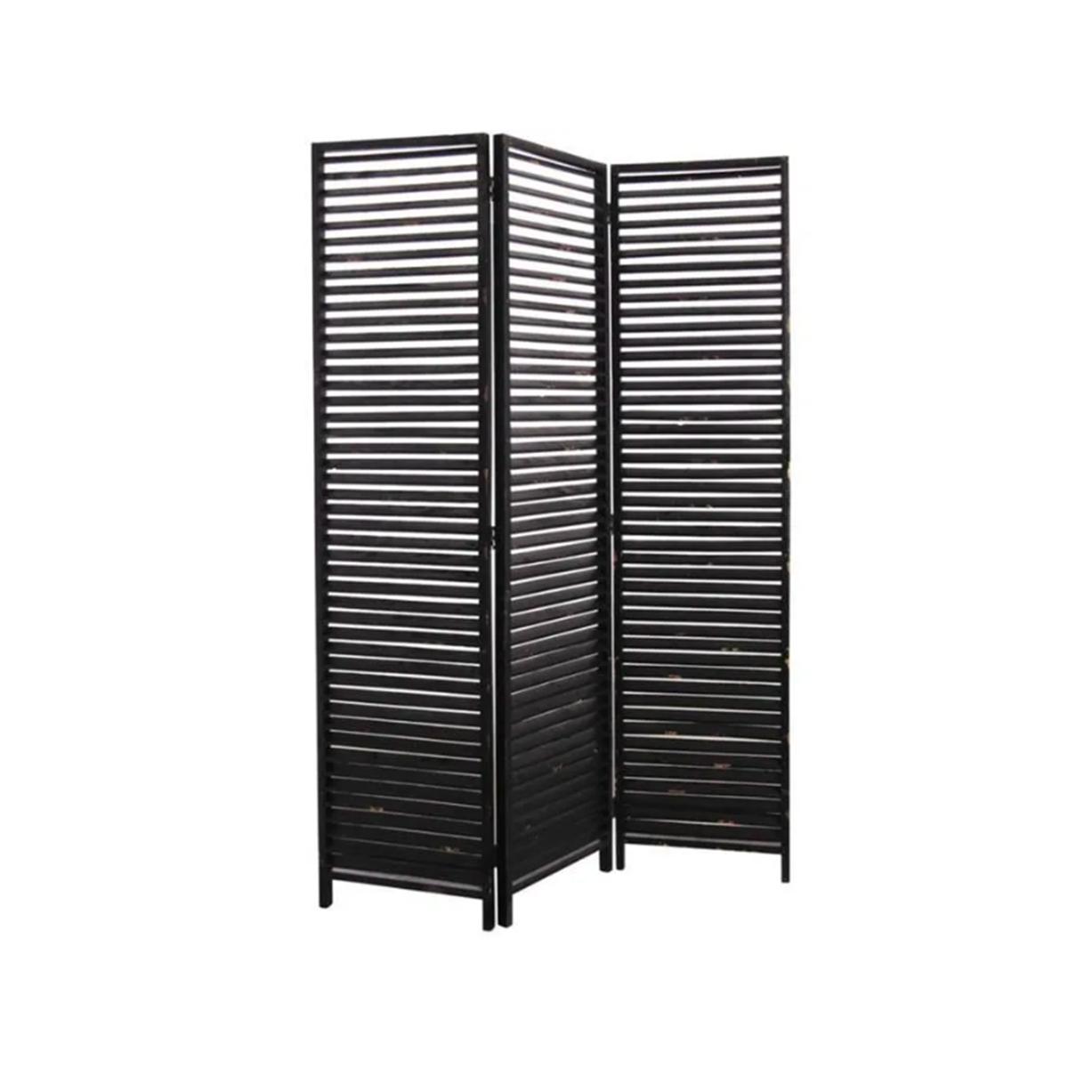 Paravent noir avec 3 panneaux.