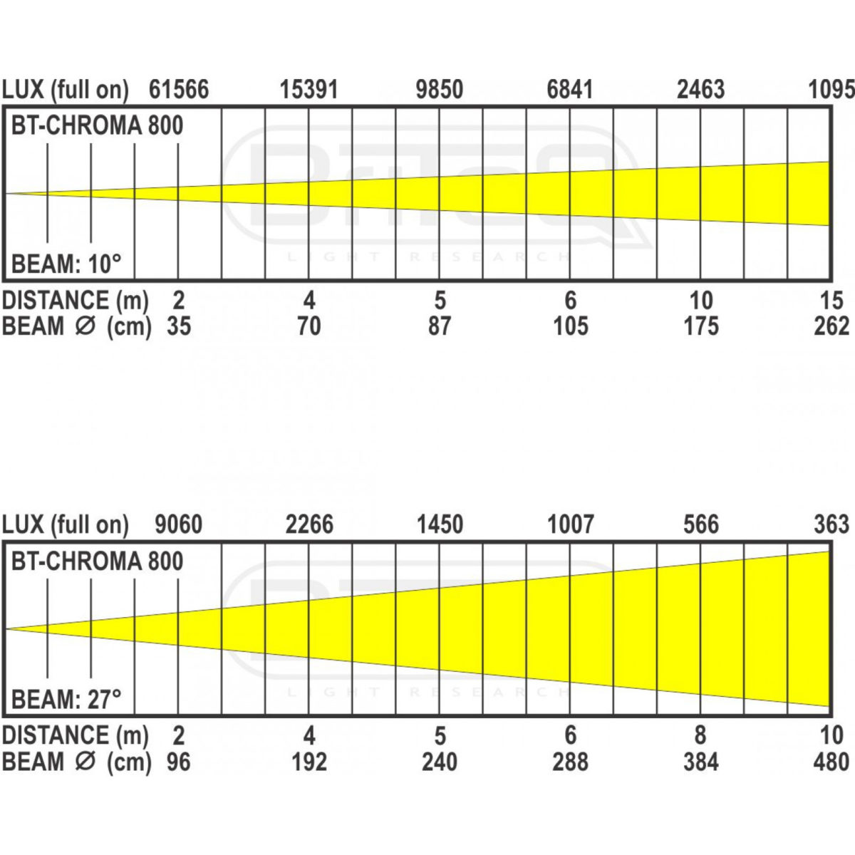 - 40 LED RGBL de 20 W pour un rendement élevé avec des couleurs saturées et une excellente lumière blanche!