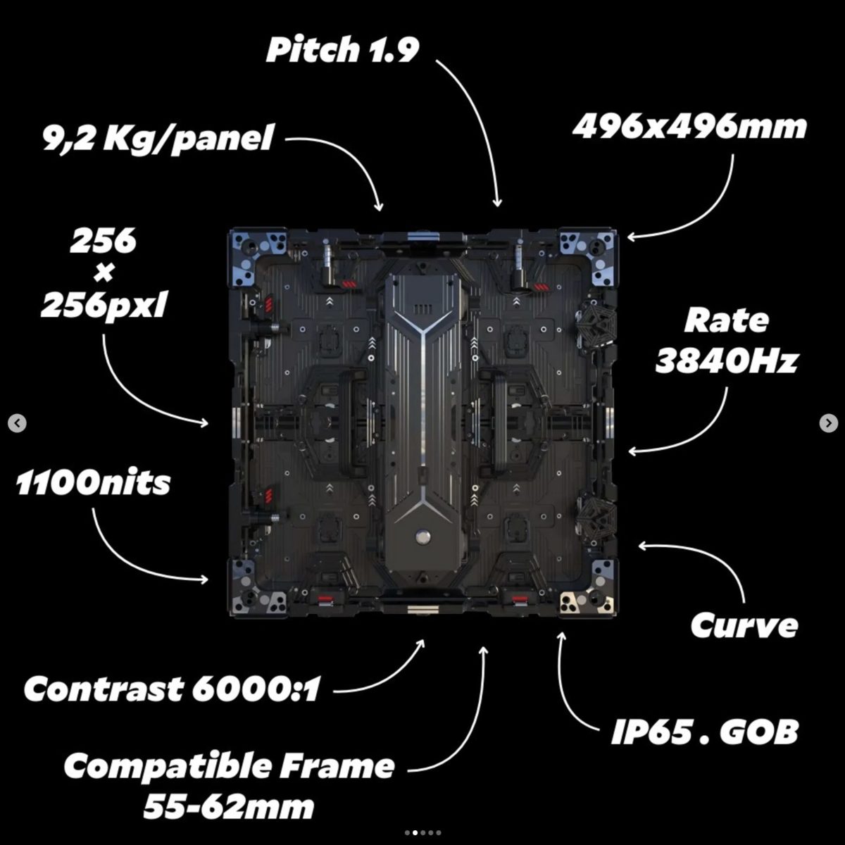 Dalle LED Helios 1.9 – 496x496mm – 256x256px – IP65