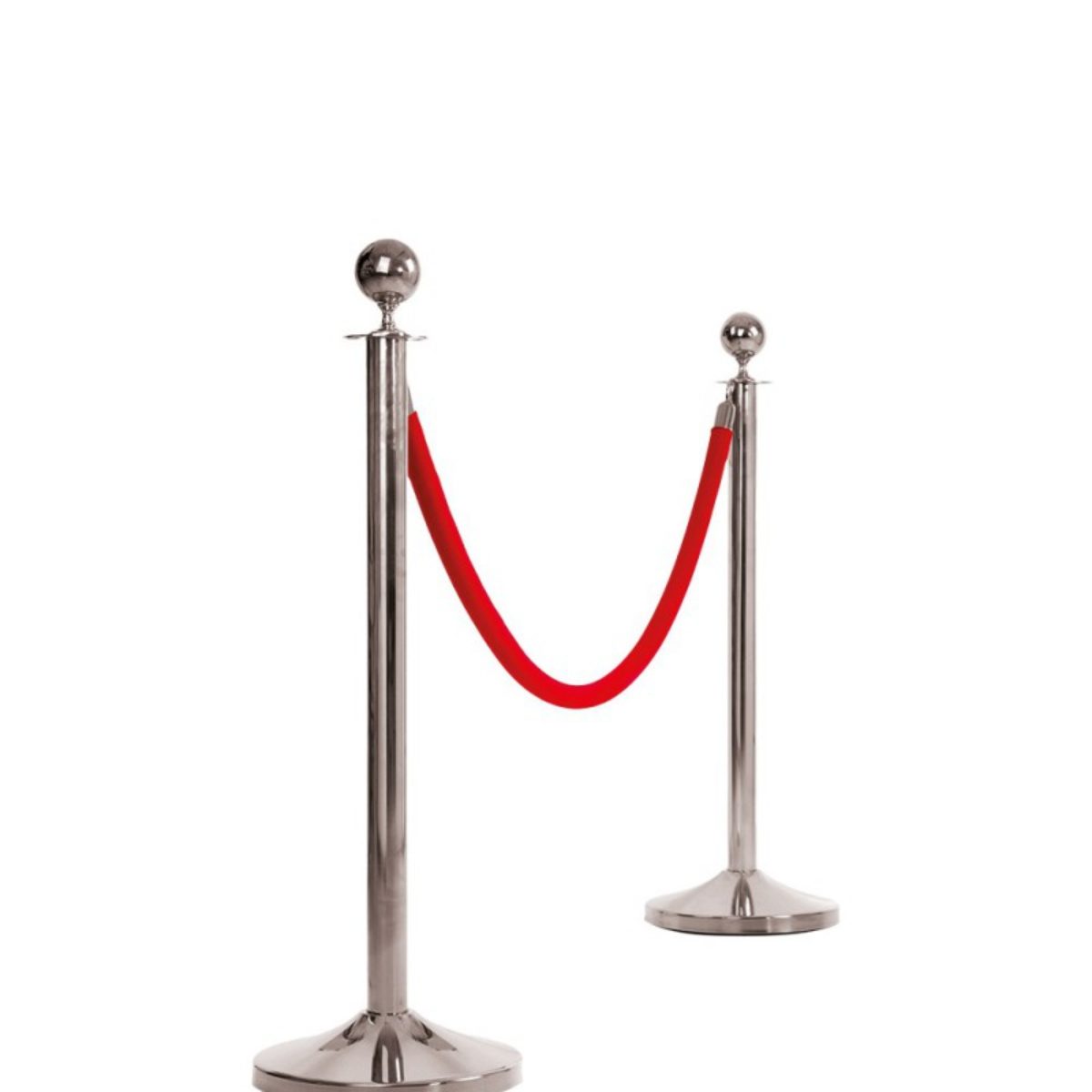 Potelet guide-file prestige en métal chromé reposant sur une base lestée.