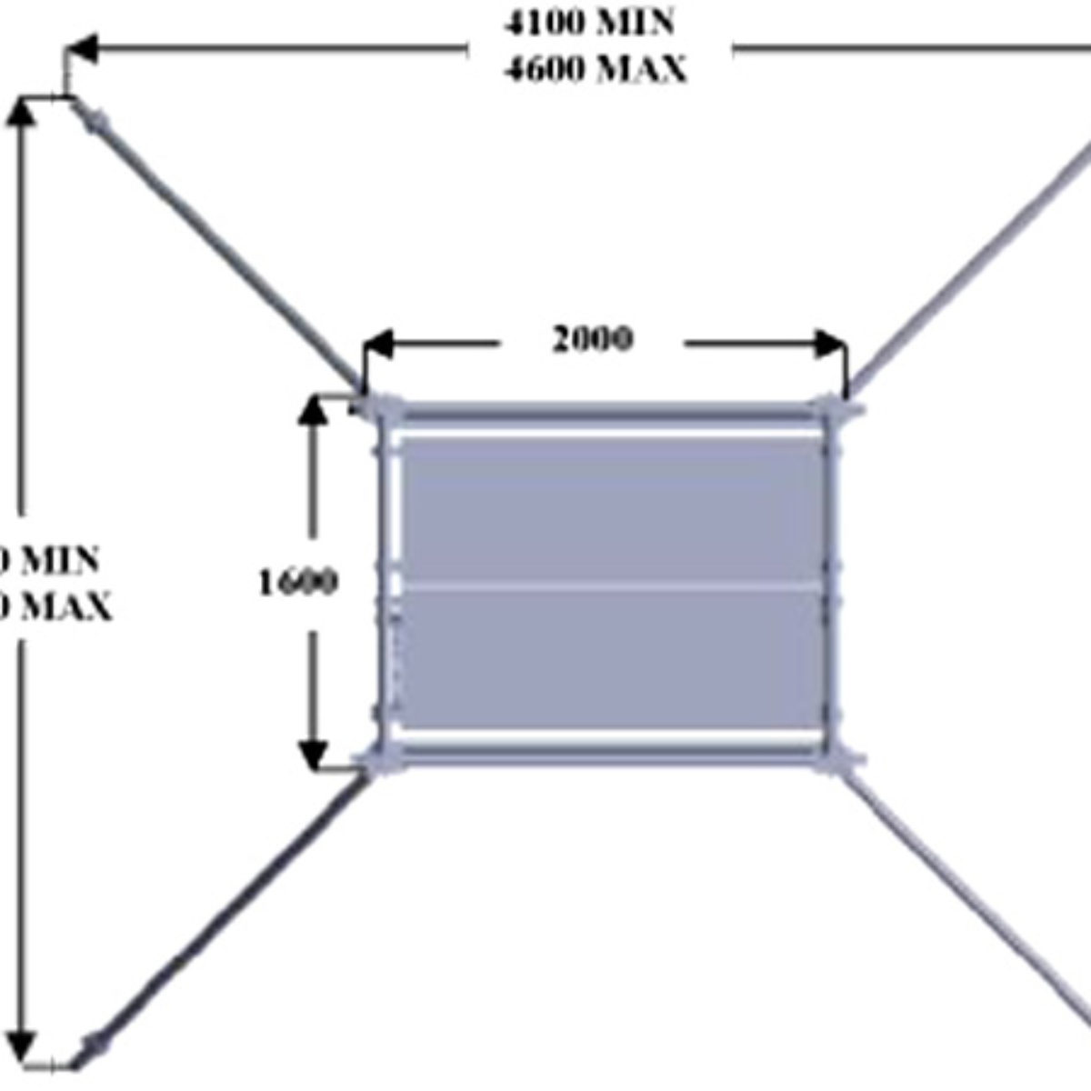 - Encombrement au sol avec les jambes de force: 4,1MIN / 4,6MAX m x 3,75MIN / 4,25MAX m