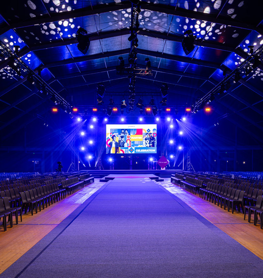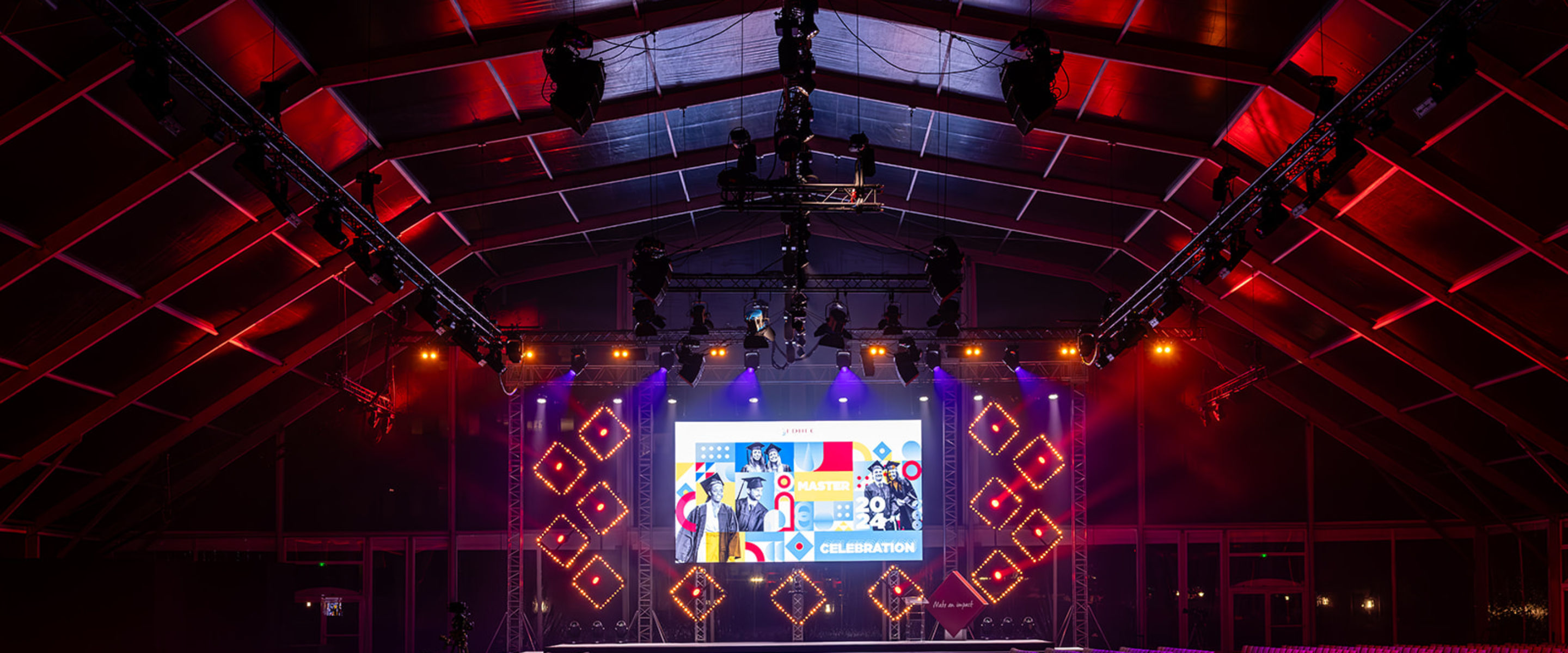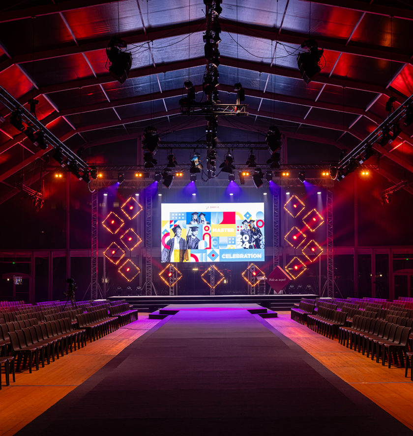 Notre agence a accompagné l’école, en prenant en charge la direction technique et la scénographie, pour transformer les espaces du campus en un véritable lieu de célébration.