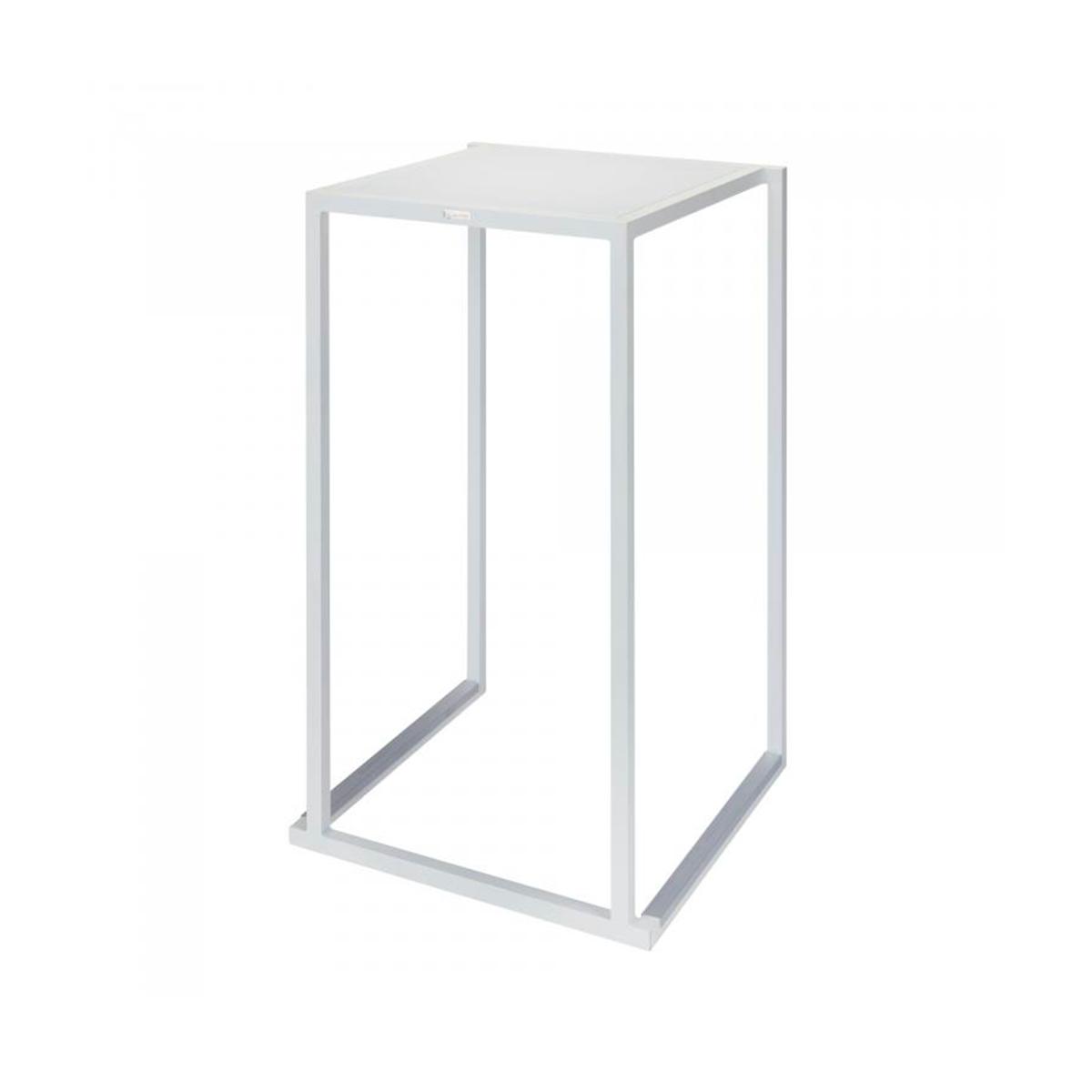 Mange debout blanc avec deux choix pour le plateau : noir ou bois blanc.