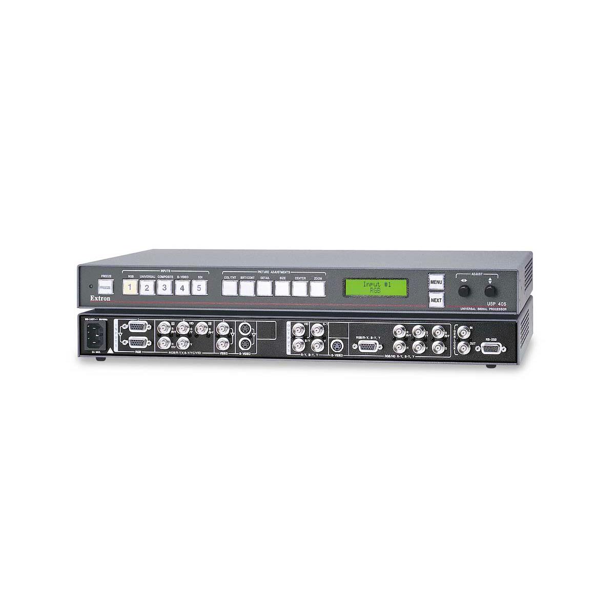 Le processeur de signal universel USP 405 d’Extron est la solution unique pour tous les besoins de conversion de signal vidéo. Il est un tout-en-un, scaler haute performance, convertisseur de numérisation, transconverter, convertisseur de format, commutateur et transcodeur. L’USP 405 accepte un large éventail de formats de signaux vidéo, les traite et les produit tous dans un format directement sur un écran numérique, un projecteur ou un dispositif d’édition. Les applications pour l’USP 405 comprennent la location et la mise en scène, salles de conférence, salles de classe, auditoriums, et bien plus encore.